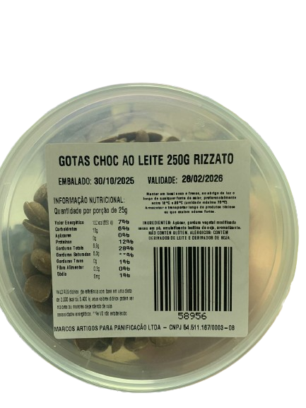 Gotas Forneáveis Ao Leite 250g (Produto Fracionado) - Rizzato